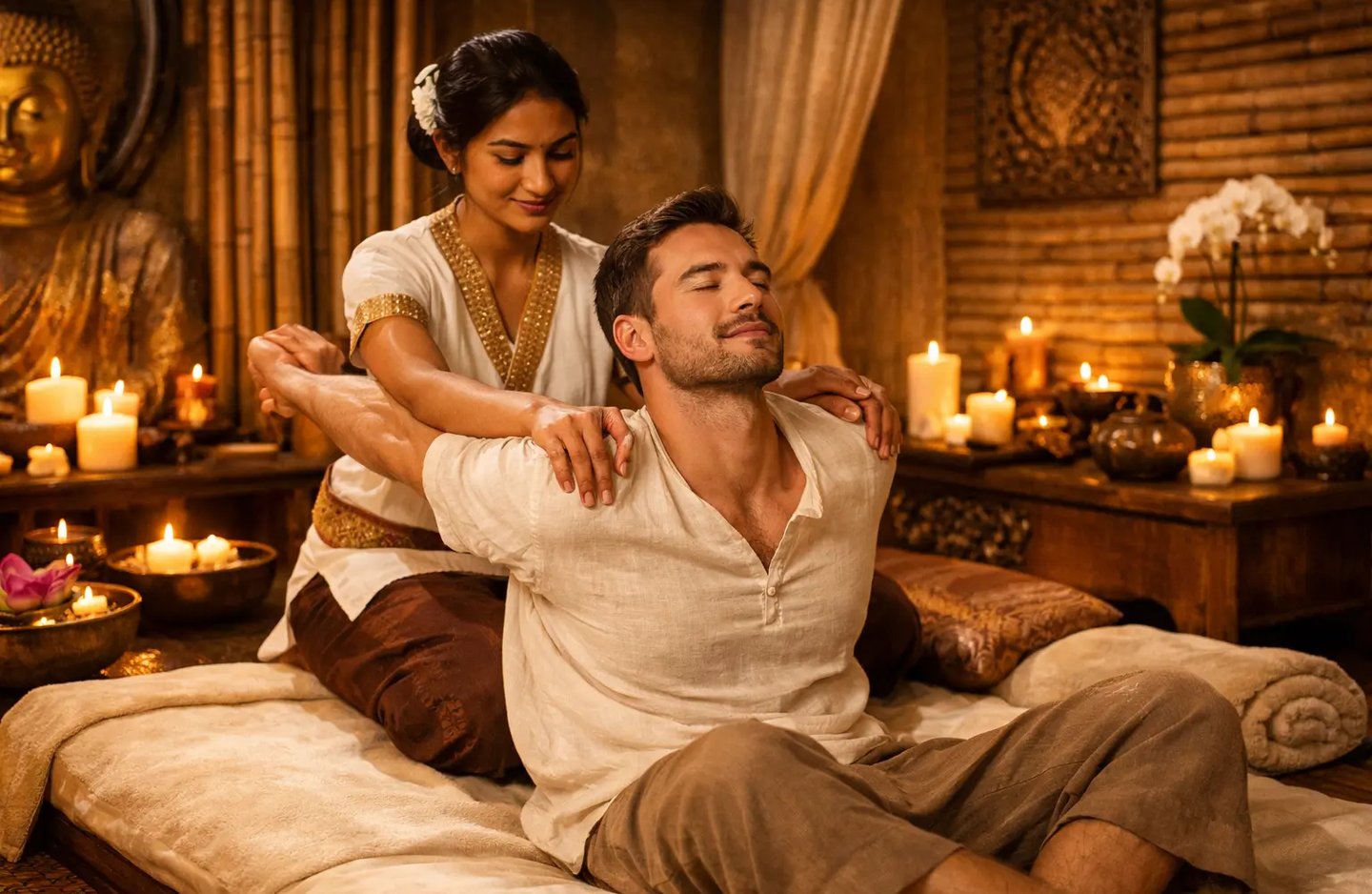 Rooted in ancient Thai healing practices, Thai Massage uses palms, thumbs, elbows, and gentle stretches instead of oils. The therapist works along the bodyβs energy lines to release tension and improve mobility.